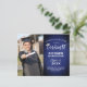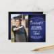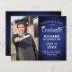 Um anúncio de graduação, moderno e amigável, azul-marinho e branco, impresso em papel pesado 4,5x6,5 polegadas em vez de estoque personalizado com sua foto de formando, nome, ano de aula e nome e/ou grau da escola (ou mude o texto para sua mensagem personalizada) com o título PARABÉNS PARA NOSSO FORMANDO em tipografia moderna, escrita à mão, com um falso boné de formatura metálico de folha de folha de prata ou cartão contra um fundo azul de marinho metálico escovado e com dois tons. Ideal para orçamentos conservadores e/ou entrega manual. ASSISTÊNCIA: para obter ajuda com a modificação ou personalização do design, a alteração de cor ou a transferência do design para outro produto, entre em contato com o designer ANTES DE ENCOMENDAR através da guia MENSAGEM de Bate-papo Zazzle ou envie um email para makeitaboutyoustore@gmail.com.