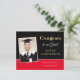 Um alternativo de 4,5 pol x 5,6 pol com preço inferior. Disponível em um STOCK DE CARTÃO SEMI-GLOSS 110 lb, que é a opção padrão (mais espesso para convites), OU um STOCK de PAPEL THINNER FINISH 80 lb FINISH (ideal para gabinetes). Os envelopes são um extra opcional e são ligeiramente maiores que o tamanho da placa. Este design moderno tem sua foto de formando e seu texto de na moda. Totalmente personalizável, isso tem letras brancas e douradas em um fundo preto com uma borda vermelha correndo ao longo da borda inferior. Simplesmente troque em sua própria foto de orientação de retrato, e o texto também pode ser facilmente personalizado, incluindo sua mensagem com mais detalhes sobre seu formando no verso. Se desejar, clique na opção personalizar mais para alterar os estilos de fonte, as cores e também as cores de fundo.