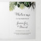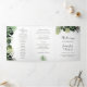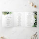 Este triplo programa de cerimônia de casamento apresenta plantas tropicais verdes e peludas pintadas em aquarela. Moderno, exótico e perfeito para um casamento de destino.