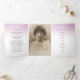 Ordem de serviço do programa funerário de rosa branco roxo e pomba branca em memória amorosa tripla de 6 páginas com três fotos do programa funerário. Um programa elegante onde você pode simplesmente substituir o texto de exemplo e as fotos por suas próprias fotos e detalhes do serviço de memorial. Fotografia de design e rosa por Sarah Trett. www.sarahtrett.com para www.mylittleeden.com (Fotos são imagens marcadoras para você substituir por suas).