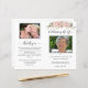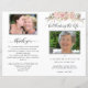 Programa de memórias fúnebres do funeral apresentando a foto do seu falecido amor, mostrada por belos detalhes florais cor-de-água, cor-de-rosa-pincel e creme. Na frente abaixo da foto falecida você pode adicionar o nome, o nascimento e a data da morte, o endereço e a data do local do memorial. Dentro à esquerda, há uma área para o obituário e à direita uma área para a ordem de serviço. No verso há a oportunidade de adicionar uma segunda fotografia, uma obrigado que você envia e as direções para depois das instruções do funeral. NOTA: o programa vem em uma folha de papel de qualidade plana que precisará ser dobrada assim que você as receber. Coordenando a Celebração do Cartão de Convite à Vida, guia, Assinatura de Foto de Boas-vindas e notas de agradecimento também disponíveis. Parte do nosso "Delicate Funeral, Memorial Collection".