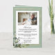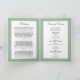 Programa memorial funerário com uma fotografia do falecido, seu nome, datas, local memorial, data do evento e elegante quadro de ouro com verde-aquarela. Na dentro está um obituário, e a ordem de serviço; e atrás de outra foto, uma nota de agradecimento e o segundo lugar para depois do funeral. Para mais personalização, clique no link "personalizar mais" e use nossa ferramenta design para modificar esse modelo. Se precisar de ajuda ou itens correspondentes, entre em contato comigo.