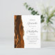 A borda esquerda deste elegante convite de casamento moderno apresenta uma laranja queimada e uma aquarela ferrugem borda agitada com falsa brilho de ouro. O texto personalizável combina o script de cinza de carvão e as fontes sans serif em um fundo branco. O verso fornece espaço para detalhes do casamento em um fundo azul de marinho sólido, junto com um código QR que os convidados podem digitalizar para visitar seu site e RSVP, o que economiza o custo de imprimir e enviar cartões RSVP separados.