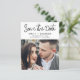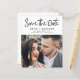 Foto de Script Manuscrito Moderno e Elegante do Orçamento Salve a Ficha de Casamento de Data. O cartão de convite para salvar data inclui uma tipografia de chic e na moda com um design simples e minimalista sobre fundo branco ao qual você pode adicionar sua fotografia personalizada de noivado.