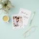 Casamento de Orçamento Obrigado Cartões que têm uma foto na frente e atrás. Os cartões de agradecimento contêm uma tipografia cursiva moderna, escrita com letra de mão, que é elegante, simples e moderna para usar após a celebração do dia do casamento.