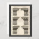 Ilustrações visuais de elementos arquitetônicos antigos, entablaturas. A entablação consiste em três camadas horizontais, todas elas visualmente separadas umas das outras por meio de molduras ou bandas. As três camadas da entablação têm nomes distintos: o arquitrave vem no fundo, o frieze está no meio e a coroa moldada está no topo. Nas obras romanas e de renascença postada, a entabulação pode ser transportada de coluna para coluna sob a forma de um arco que primavera da coluna que suporta o seu peso, conservando as suas divisões e enriquecimento escultural, se for caso disso. Existem apenas três antigas e originais ordens de arquitetura, as Doric, Ionic e Corinthian, que foram inventadas pelos gregos. A esses, os romanos adicionaram o Tuscano, que eles tornaram mais simples que o Doric, e o Composto, que era mais ornamental que o Corinto.