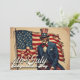 Uma figura intacta, ainda orgulhosa, está diante de uma bandeira dos EUA testada — sua presença é um tributo ao espírito duradouro de liberdade, resiliência e ao sonho americano. Esta imagem captura a essência do Dia da Independência com dignidade poética e força patriótica.