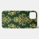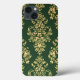 Este produto apresenta uma intrincada e repetida cor damasco em ouro, colocada sobre fundo verde profundo. O design apresenta um motivo ornamentado, simétrico, floral e foliar, com curvas delicadas e floreados, que lembra a estética barroca ou rococó. O detalhamento fino e o estilo tradicional sugerem influências de interiores europeus vitorianos ou aristocráticos.