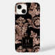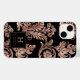 Esta capa de telefone apresenta um padrão de colheita de ornamentado de folhas de folhas de folhas falsas de ouro rosa e flores sobre fundo preto. Personalize-o com o seu nome e nome iniciais na fonte serif, enquadrado por um quadrado de ouro preto e rosa.