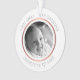 Este Enfeites de natal personalizado apresenta um moderno falso design de ouro rosa. Personalize o nome, o ano e a foto. É de dois lados. A frente terá uma foto em preto-e-branco e a parte de trás terá sua foto original colorida. Este modelo funciona melhor com fotos de formato paisagem com o assunto no centro.