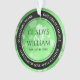 Celebre o 20, 38º ou 55º aniversário de casamento emerald com este ornamento de na moda! A legante inscrição a preto e branco com confete hexagonal em um fundo verde esmeralda adiciona um toque memorável para esta ocasião especial e marco extraordinário. Personalize com nomes de casais, datas de casamento e mensagens de parabéns pelas usinas. O reverso mostra design idêntico. Use como está ou substitua por uma foto do casal. Este design é otimizado para a forma do círculo. Design © W.H. Sim. Mais informações em zazzle.com/expressionsoccasions
