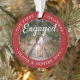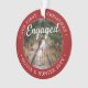 Celebre o feliz feriado de 1rua do seu noivado com uma foto personalizada de 2 "Our First Christmas Engaged" em ornamento acrílico redondo. Todo texto e imagens neste modelo são simples de personalizar e podem ser diferentes ou iguais em frente e atrás. (DICAS DE IMAGEM e DESIGN DE TEXTO: 1) Para ajustar a posição do texto, adicione espaços no início ou no fim. 2) Para centralizar a foto exatamente como quiser, recorte-a em forma quadrada antes de carregá-la no site do Zazzle.) Como ideia, a tipografia pode ler "Juntos" ou "Casados". Design apresenta uma na moda moderna e minimalista borda vermelha e branca, caligrafia de estilo manuscrito, nomes e anos de casal e duas fotos da sua escolha. Essa única lembrança de casamento faz uma bela ideia de presente de chá de panela para a noiva e adiciona um toque elegante às decorações de casa do Natal.