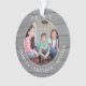 Comemore as alegrias simples das festas com um Enfeites de natal personalizado de fotos em acrílico. As imagens e todos os textos neste modelo são simples de personalizar e podem ser diferentes ou iguais em frente e atrás. (DICA DE IMAGEM: Uma maneira fácil de posicionar uma foto exatamente como você deseja é recortá-la antes de carregá-la no site do Zazzle.) O design moderno estilo fazendeiro apresenta uma fronteira de madeira falsa com cinzas rústicas, nomes clássicos de tipografia e ano, e duas fotos de sua escolha. Esta familia única adiciona um toque elegante às decorações das casas de Natal.