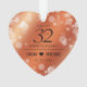 Celebrar o 32º aniversário de casamento em bronze com este ornamento acrílico na moda! A inscrição elegante com um confete hexagonal sobre fundo de folha de bronze acrescenta um toque memorável para esta ocasião especial e um marco extraordinário. Personalize com nomes de casais e data de casamento. O reverso mostra design idêntico. Use como está ou substitua por uma foto. Este design é otimizado para as formas círculo, oval, cardíaca e camiseta. Design © W.H. Sim. Mais informações em zazzle.com/expressionsoccasions