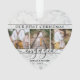 Celebrate the joyful 1st holiday of your engagement with a custom heart-shaped 4 photo collage "Our First Christmas Engaged" faux marble acrylic ornament. All text and images on this template are simple to personalize. (IMAGE PLACEMENT TIP: An easy way to center a photo exactly how you want is to crop it before uploading to the Zazzle website.) As an idea, the script typography can read "Together" or "Married." Design features a stylish black and white faux marble border, handwritten style calligraphy, the couple's names & year, and four pictures of your choice. This unique wedding keepsake adds an elegant touch to Xmas home decorations.