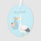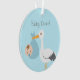 Decore a sala do berçário do bebé com este design que tem uns desenhos animados de uma cegonha branca que entrega um bebé bonito envolvido toda acima em um pacote azul das bolinhas. Personalize com nome da criança. A paleta de cor de azul pastel e do branco é acalmando-se e reconfortante para um bebé.