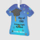 O ornamento de graduação em forma de T-Shirt azul com estudantes de estrelas apresenta um boné preto e todo o texto editável impresso em acrílico resistente. Sala de volta para adicionar mais. É bom manter o segundo grau especial ou o formando da faculdade.