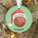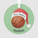 Ornamento acrílico de Santa Hat de basquetebol com cores de fundo e texto personalizáveis, frente e verso.