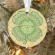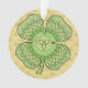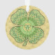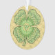 Esse clássico trevo de quatro folhas sobrepõe um design concêntrico com camadas de tecelões celtas em vários tons de verde com um pouco de laranja para sotaque.