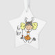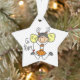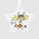 Ornamento acrílico em forma de estrela com nossa design de cheerleader uniforme de fêmea laranja na frente e atrás.