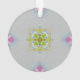 Este padrão bonito neste ornamento é de um dos meus trabalhos de arte pintados originais. Este belo ornamento de medalhão azul pastel, chartreuse, rosa e dourado é uma bela adição ao seu decoro de Natal!