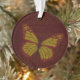 Padrões inspirados pelas decorações tradicionais chinesas adoram asas, corpo e manchas desta borboleta monarca em tons de vermelho, ouro e marrom.