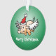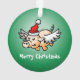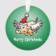 O Porco de Natal Voador num Ornamento Círculo Acrílico. Personalizar texto.