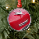 Pintura lustrosa vermelha do fundo neste carro clássico com um ornamento aero da capa do estilo que seja cromo da hortelã