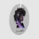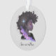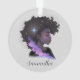 Este adorno elegante e moderno apresenta uma linda garota afro-americana. Você pode personalizá-lo com seu nome escrito em caligrafia elegante. É também um presente perfeito para mulheres afro-americanas fortes e independentes.