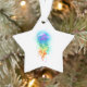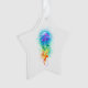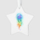 Água-viva grande, iridescente, desenhada artisticamente, brilhante, com longos tentáculos em branco, pintada sobre fundo de aquarela multicolorido. Água-viva arco-íris.