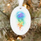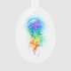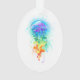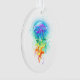 Água-viva grande, iridescente, desenhada artisticamente, brilhante, com longos tentáculos em branco, pintada sobre fundo de aquarela multicolorido. Água-viva arco-íris.