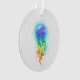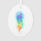 Água-viva grande, iridescente, desenhada artisticamente, brilhante, com longos tentáculos em branco, pintada sobre fundo de aquarela multicolorido. Água-viva arco-íris.