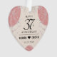 Celebre o 37º aniversário de casamento do alabastro com este ornamento comemorativo! Serif e serif negros elegantes, e sans serif, que aparecem em um fundo branco e rosa dourado, cremoso e fino, adicionam um toque memorável para esta ocasião especial e um marco extraordinário. Personalizar com nomes de casais e data de casamento. O reverso mostra design idêntico. Use como está ou substitua por uma foto. Este design é otimizado para as formas de círculo, oval, coração e camisa.