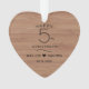 Celebre seu aniversário de casamento de madeira 5 com um ornamento comemorativo. A inscrição é minimalista e clara na textura serena de madeira de bambu. Bamboo falso fundo de grãos de madeira com letra preta. Personalizar e personalizar. Use cores ou fontes diferentes para o estilo de inscrição, se desejar, altere qualquer um dos recursos da ferramenta design ou simplesmente personalize com os nomes de casais e a data de casamento nas caixas de texto.