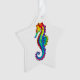 Articulação artificial, brilhante, arco-íris, cavalo de mar poligonal sobre fundo branco. Tatuagem brilhante.