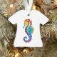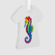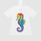 Articulação artificial, brilhante, arco-íris, cavalo de mar poligonal sobre fundo branco. Tatuagem brilhante.