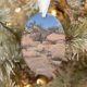 Estes enfeites de natal feitos sob encomenda descrevem uma cena bonita em um dia ensolarado 2012 da acção de graças com as nuvens macias brancas contra um céu azul claro na área natural Enchanted do estado da rocha no país do monte de Texas perto de Texas central. Esta é a parte mais inferior da fuga que conduz à cimeira de um pedregulho cor-de-rosa gigante do granito, que seja visto perto do meio atrás de algumas árvores. Os raios delicados do sol banharam as rochas coloridas rosa do granito, dando lhes um fulgor morno. Este é um parque muito popular para stargazers na noite e caminhantes de todas as capacidades durante o dia devido ao seu fácil acesso. Uma foto de família, um cumprimento curto, um nome ou um monograma podem ser adicionados ao segundo lado deste ornamento bonito que é deixado vazio para sua personalização. Este é um ornamento bonito para uma decoração interior temático de Texas. Isto pode igualmente ser feito sob medida para caber um ornamento diferente do estilo pressionando o botão da personalização. Com o arquivo da foto a imagem destacou, clica sobre + ou - botões a zumbir dentro ou para fora a imagem. Clique sobre as setas para mover para cima ou para baixo a foto, saiu-as ou endireitam-nas para reposicionar corretamente a imagem.