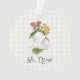 Arte do Terrier em Aquarela, flores em marrom, verde, amarelo e cinza em fundo de xadrez branco. Personalize com AMOR, NOME DO PET em cinza escuro. Fácil personalização de texto e cor do texto. Ótimo Enfeite de Árvore de Natal para qualquer amante de animais, memorial de pet, novo pet, humano de cachorro, amante de Jack Russell Terrier. Doce, Colorido, Divertido.