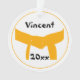 Personalize o Único Ornamento Acrílico Laranja Belt Round de Artes Marciais com o nome do seu artista marcial e do ano atual. Crie um presente personalizado de parabéns de artes marciais para comemorar um teste de cinta laranja. Esta de uma espécie personalizada de ornamento esportivo de artes marciais apresenta uma fotografia digitalmente melhorada de um cinto de laranja de artes marciais amarrado num nó com fundo branco.