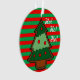Ornamento festivo Funky da árvore com design as listras e da árvore de Natal verdes e vermelhas. Opção a personalizar com seus próprios texto/nome. O mesmo texto/imagem na parte dianteira e no reverso.