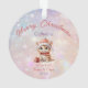 Aqui está um Enfeites de natal bonito para aquela neta especial, filha ou sobrinha! Um gatinho listrado de cinza com grandes olhos azuis veste um chapéu de Papai Noel vermelho e branco e segura um presente decorado com fita vermelha e arco. A imagem é colocada sobre um fundo cor-de-rosa e lavanda do compartimento. A parte de trás do ornamento tem o mesmo plano de fundo com seu texto personalizado e uma imagem de gatinho segundo. É personalizado para ela, e facilmente adaptado para um presente de qualquer um; basta mudar o texto.