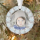 Personalize este ornamento de duas fotos lado a lado com este design de floco de neve branco opal para os avós como uma bela manutenção para o Natal ou Hanukkah. A frente deste Enfeites de natal personalizado redondo apresenta um modelo de foto rodeado por uma borda de cinza de pomba e uma questão de falso falso falso falso flocos de neve opais iridescentes ao redor. O modelo de foto torna mais fácil carregar uma foto do neto. A parte de trás desses Enfeites de natal personalizados tem um fundo sólido de cinzas ricas de pomba, três modelos de texto em uma fonte bem escrita e três flocos de neve opais brancos dispostos de forma artística em torno de seu texto personalizado. Adicione o(s) nome(s) do Avô, o(s) nome(s) do neto e o ano para um dos tipos, crie o ornamento da árvore dos seus Avós em cinzas e flocos de neve brancos opais para o tesouro por anos. Tão fofo e fácil de personalizar, é fácil fazer um para a vovó e um para o vovô para um conjunto de correspondência.