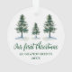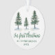 Script de Caligrafia Elegante Moderno, Árvores de Pinheiros de Watercolor, Verde Nosso Primeiro Natal Como Ornamento de Avós