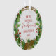 Esta design apresenta uma impermeável corante aquoso, coroa de natal, decorada com cones de pínus, bagas e canas doces, rodeando as palavras "Nosso Primeiro Natal como Avós" em tipografias brancas e vermelhas e fontas. Personalize acrescentando o nome do bebê e o ano. Personalize o verso com uma foto favorita do novo neto, cercada pela mesma coroa.