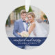 Arranjo Elegante de Caligrafia Casada e Feliz Ornamento Azul Foto de Casamento com Flocos de Neve.