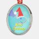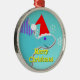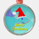 Ornamento azul de Dino do Stegosaurus do Feliz Natal. Um dinossauro azul pequeno adorável do Stegosaurus dos desenhos animados do Natal com o chapéu e neve vermelhos do papai noel lasca-se caindo do ornamento do céu com texto customizável "Feliz Natal" nele. Este artigo é inteiramente customizável, adiciona seus textos e imagens! Uns grandes enfeites de natal do dinossauro para o fã pequeno grande do dinossauro!