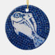 Ornamento redondo do mosaico bonito e artística dos peixes. Grande fotografia de um peixe azul do mosaico em um fundo amarelo do tijolo. Grande presente para aqueles que como a pesca ou que aprecia o mosaico art. faz a uma grande recordação para pescadores. Design disponível em vários artigos.