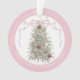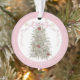 Celebrate a milestone you’ll treasure forever with this sweet Baby’s First Christmas Ornament. Designed with a soft pink border and delicate watercolor details, one side features a festive Christmas tree topped with a ribbon bow and personalized with your baby’s name and year. The reverse side showcases your favorite photo, framed with matching ornaments, greenery, and bows. Capture the magic of your little one’s first holiday season with a personalized ornament that will sparkle on your tree year after year.