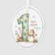 Celebrate your little one’s first holiday season with this charming “My 1st Christmas” ornament featuring a cookie-decorated number one, a cheerful snowman in a striped scarf, and whimsical winter accents like snowflakes, berries, and pumpkins. On the reverse side: a smaller version of the image, the adorable poem “A sprinkle of magic, a giggle, a grin— My very first Christmas is ready to spin! With cookie delights and a snowman so jolly, I’m wrapped up in wonder and peppermint folly.” plus your baby’s name, the year, and a joyful Merry Christmas message.