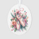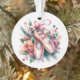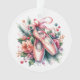Enfeites de natal personalizado com calçados de balé cor-de-rosa-d'água com flores cor-de-rosa e uma mensagem personalizada no verso com uma bonito borda dourada.